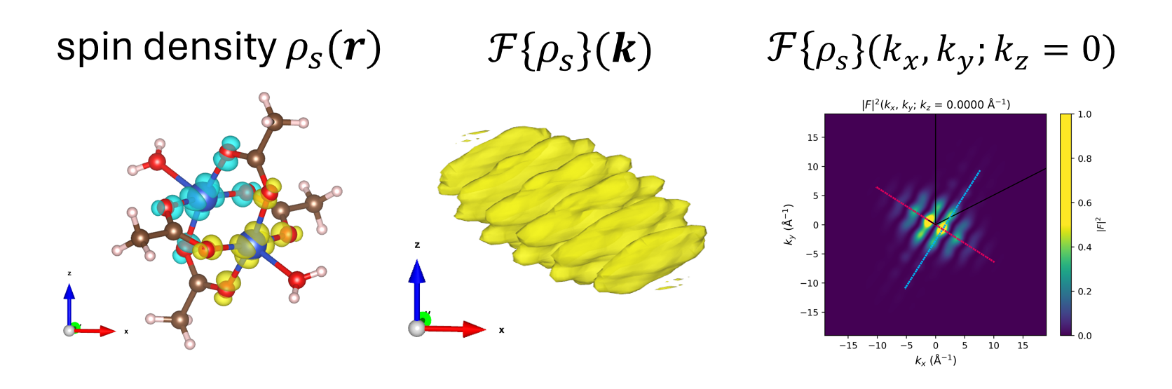 The fft_electronic_spin_density Python package performs fast Fourier transform (FFT) on Gaussian .cube files of charge or spin density, primarily to obtain the (magnetic) form factor for neutron scattering.