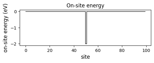 chain = LinearChain(N, eps_0, t, a, H_impurity=H_imp, plot_dispersion=False)
